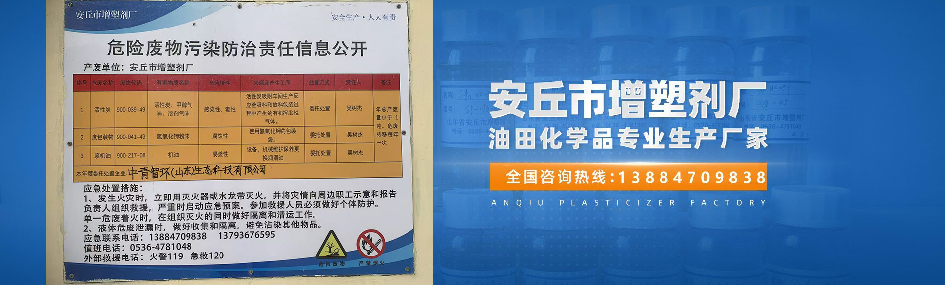 安丘市增塑劑廠始建于1984年,坐落在“全國重點鎮(zhèn)”安丘市景芝鎮(zhèn),山東省高新技術(shù)企業(yè),“山東制造”品牌認定企業(yè)。主要從事油田化學品的研制、生產(chǎn)與銷售,是破乳劑、瀝青抑制劑等油田化學品專業(yè)生產(chǎn)廠家。公司先后與中國石油大學、山東理工大學和濱州學院合作,建立了“油田化學聯(lián)合研究所”、“水處理聯(lián)合研究所”、“長期教學基地”和“大學生創(chuàng)新創(chuàng)業(yè)實踐基地”。公司已通過ISO9001質(zhì)量體系認證、ISO14001環(huán)境管理體系認證和ISO45001職業(yè)健康安全管理體系認證,取得“安全生產(chǎn)標準化證書”。公司配套產(chǎn)品生產(chǎn)線10條,年綜合生產(chǎn)能力20000噸以上。 主要產(chǎn)品有原油破乳劑、ALF系列瀝青抑制劑、清水劑、AQ系列污水處理劑、YE系列石蠟分散劑、AG系列稠油降粘劑、AN系列降凝...